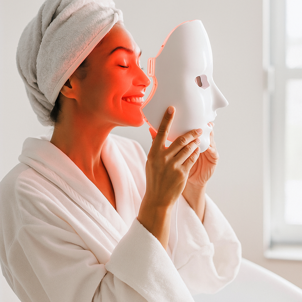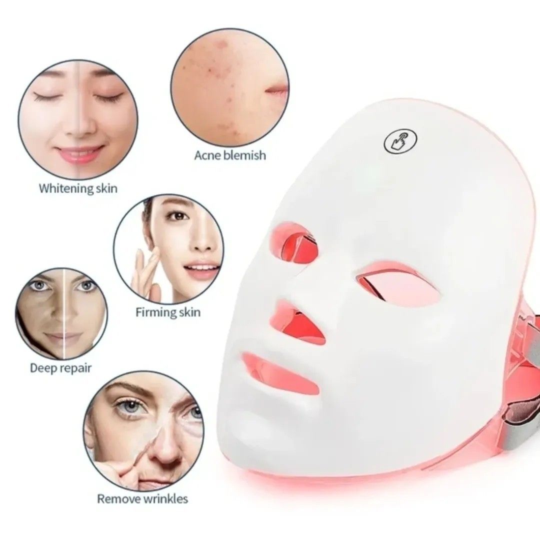 Our wireless 7-color LED face mask helps reduce wrinkles, improve elasticity, and even out your skin tone — all from the comfort of home.